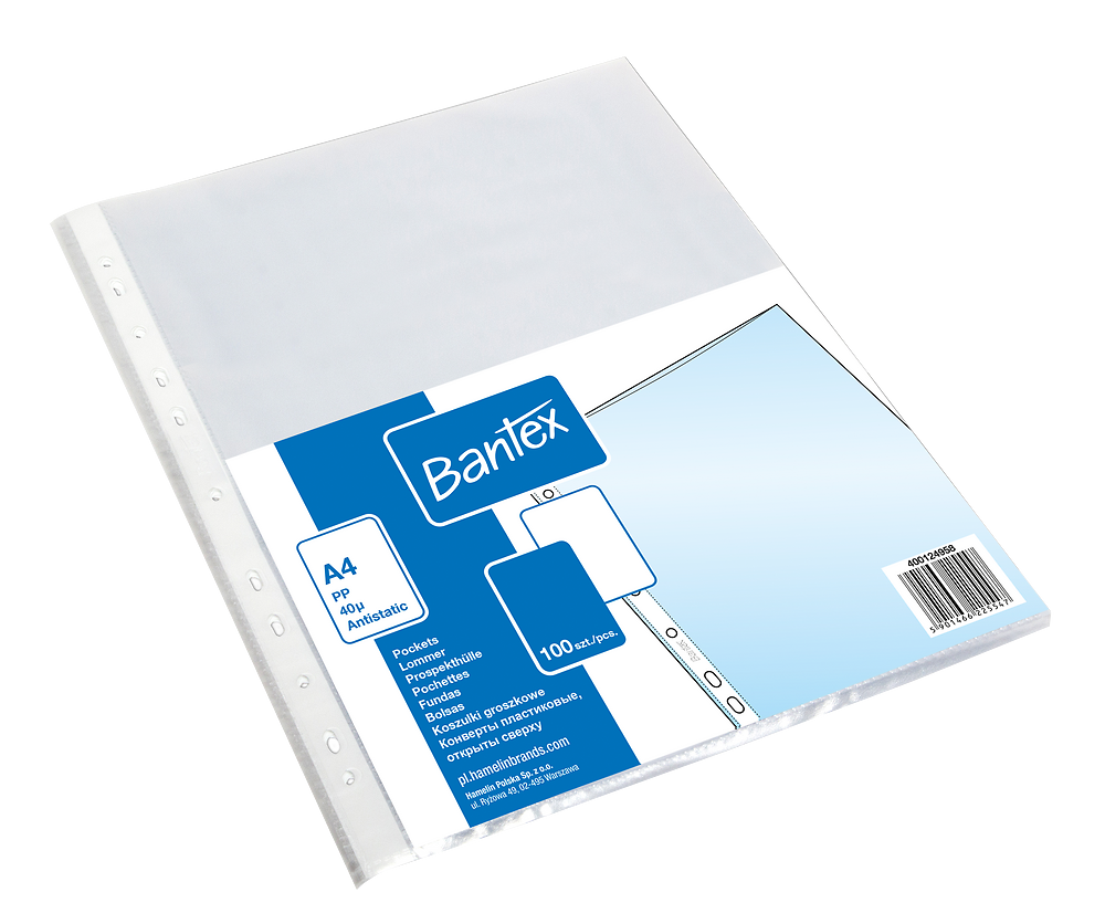 Groszkowe koszulki w formacie A4, otwierane od góry. Przezroczysta, polipropylenowa folia jest antystatyczna i antyrefleksyjna, co ułatwia przechowywanie koszulek oraz zapewnia doskonałą czytelność dokumentów. 100 SZT. koszulek o grubości 40 mic. jest zapakowane w folię, dzięki czemu zajmują niewiele miejsca.