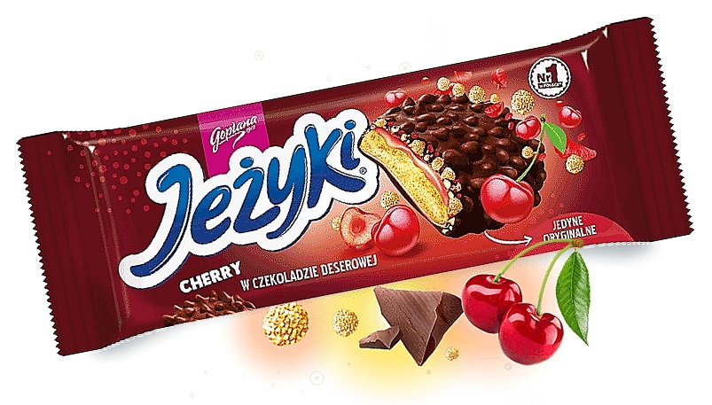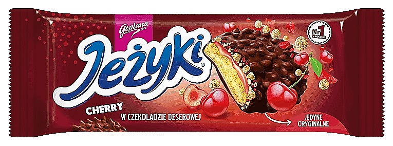 * intensywna słodycz i smak wiśni w jednym * klasyczne JEŻYKI to herbatki o wiśniowym aromacie, posypane laskowymi orzechami i polane czekoladą