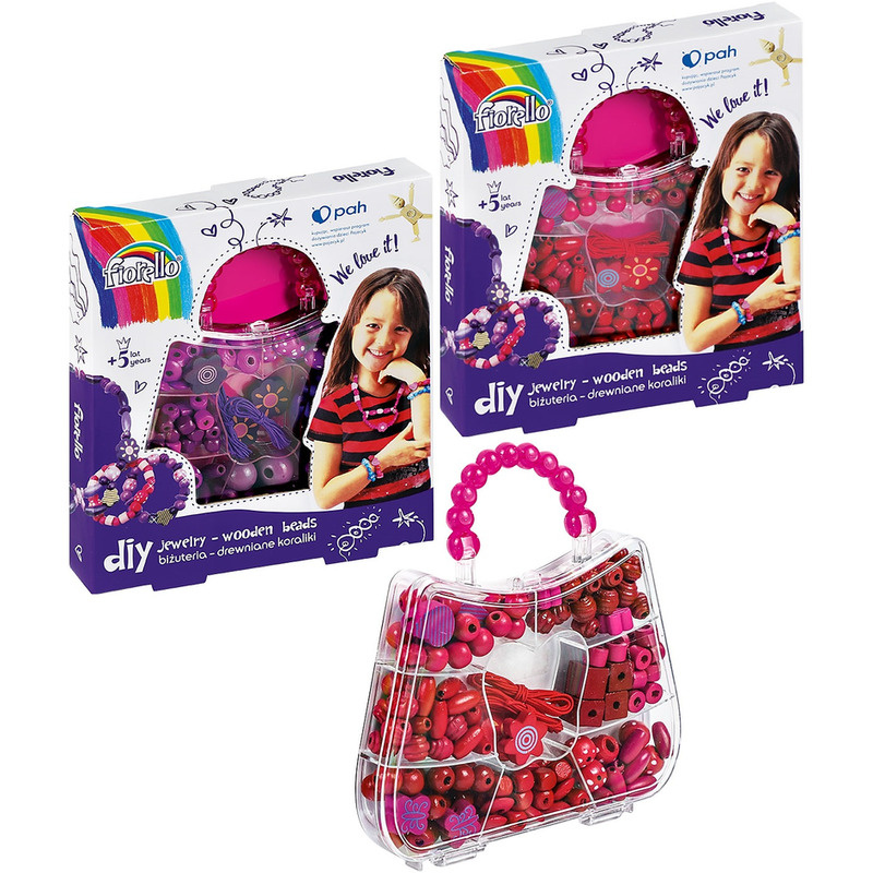 * do stworzenia własnych, wyjątkowych ozdób* w zestawie: kuferek, drewniane koraliki, gumki