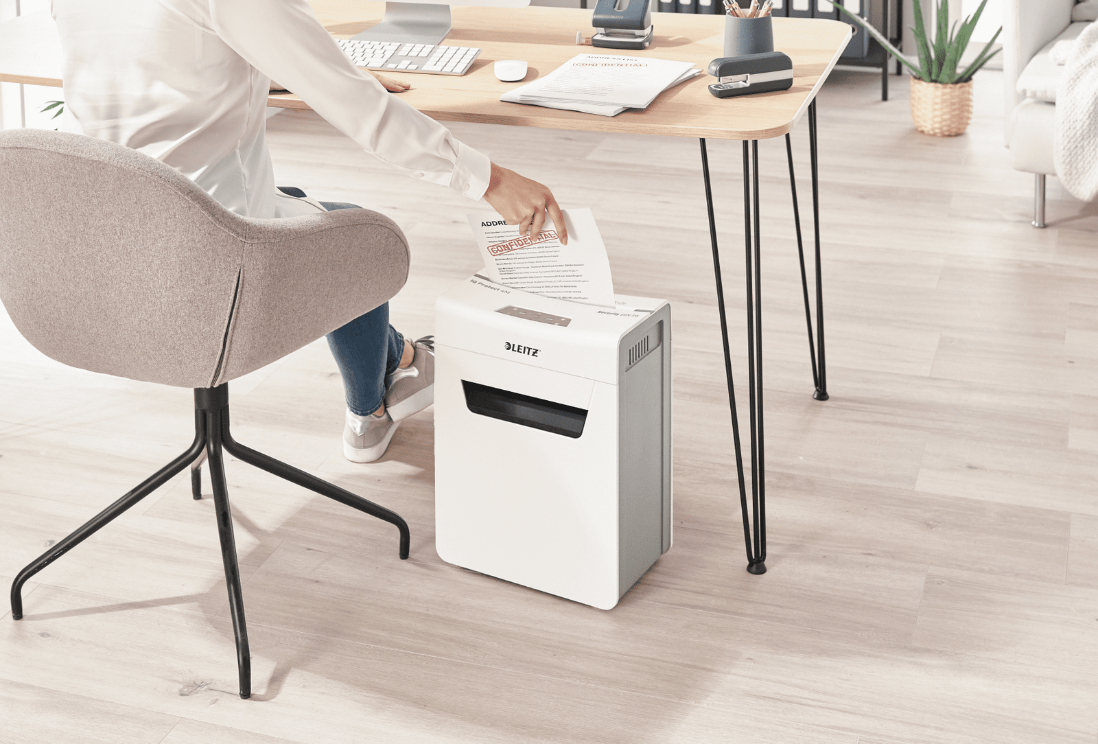 * Chroń swoje dane osobiste i biznesowe dzięki niszczarce tnącej dokumenty na mikrościnki, zapewniającej poziom bezpieczeństwa P5 i nadającej jednocześnie styl wnętrzom Twojego domu lub biura!