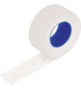 * W ofercie dwa rodzaje etykiet: proste i faliste w pięciu kolorach: białym, czerwonym, pomarańczowym, zielonym, żółtym. Zastosowanie: metkownice jedno- i dwurzędowe. Proste, 26x16 mm, rolka 700 szt.