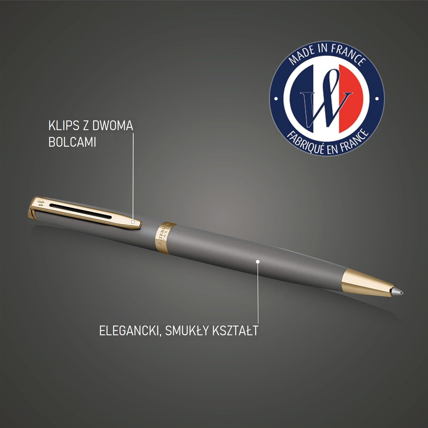 * długopis Waterman Hemisphere Stone Grey GT to elegancki i ponadczasowy model, który zachwyca minimalistycznym stylem i wyjątkową jakością wykonania