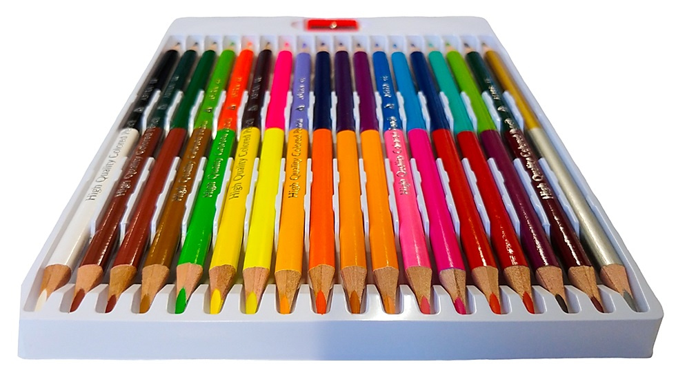 * w opakowaniu: 18 dwukolorowych kredek + temperówka