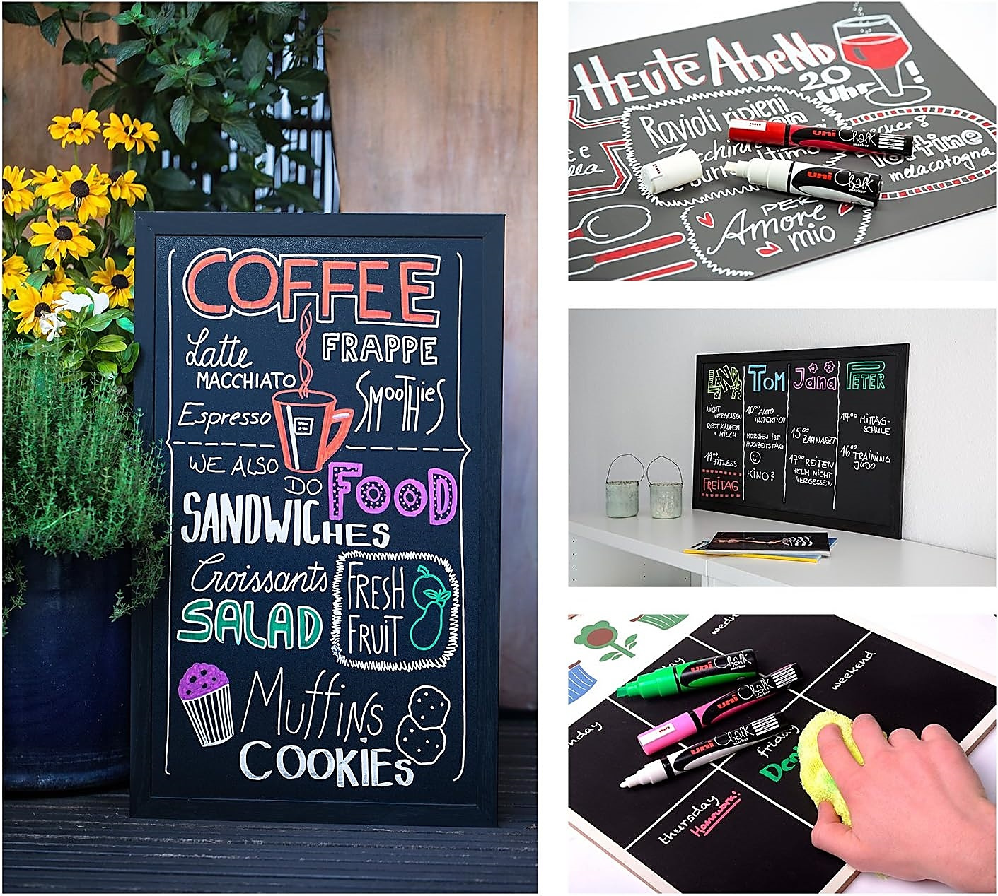 * markery CHALK z farbą kredową są idealne do rysowania i pisania po nieporowatych powierzchniach, takich jak tablice kredowe, tablice gastronomiczne (potykacze) i szkło