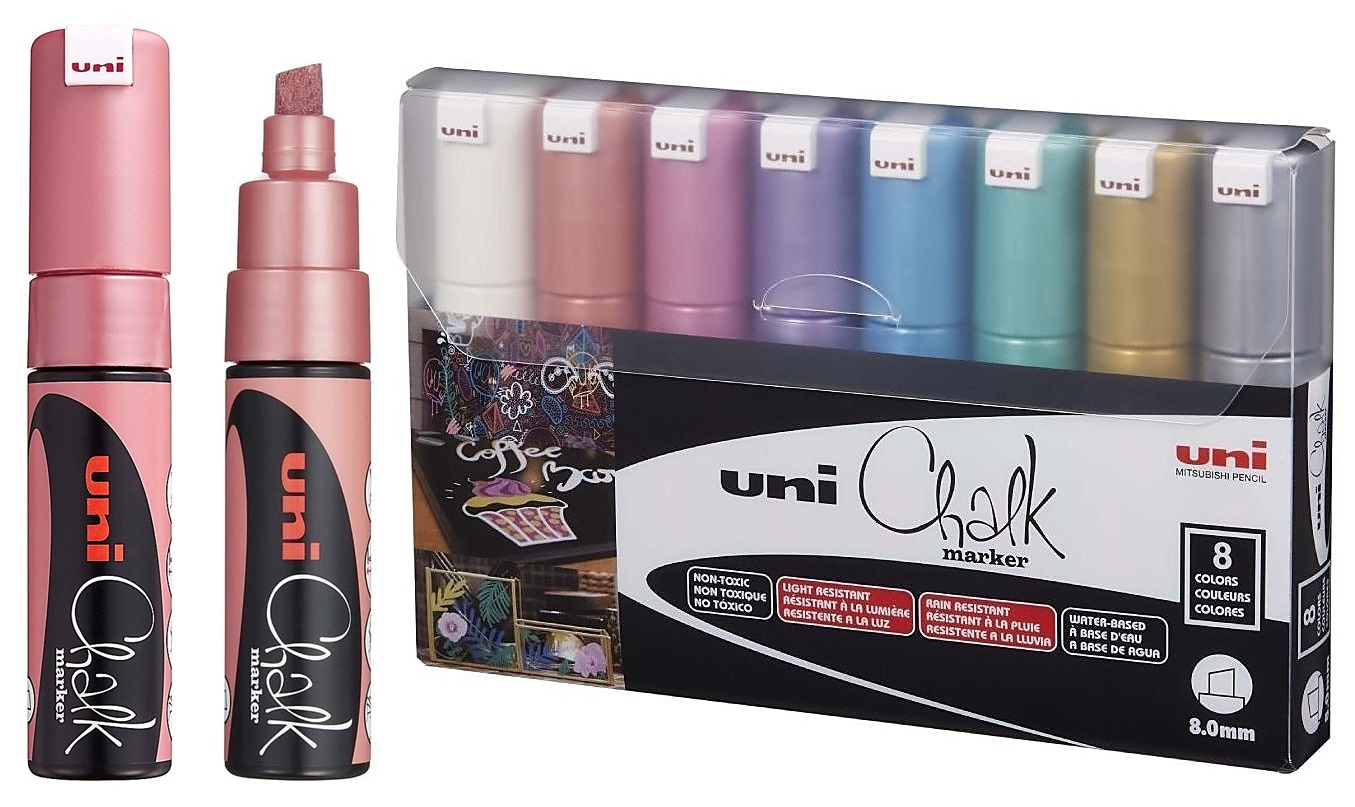 * profesjonalne markery kredowe UNI PWE-8K do pisania i malowania po czarnych tablicach i szkle