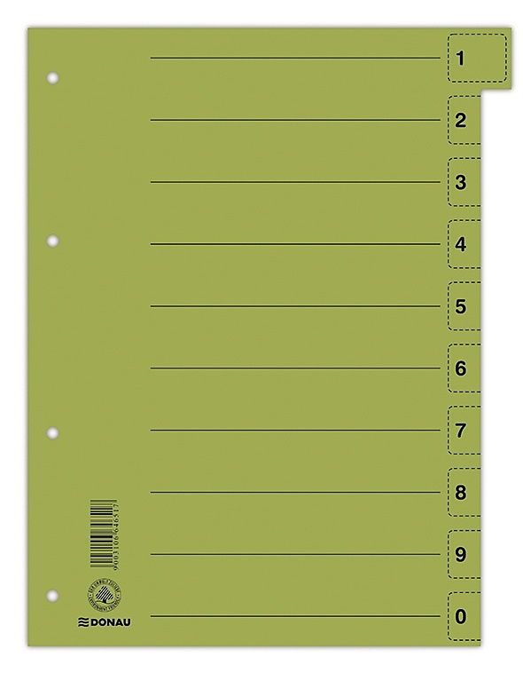 Przekładka DONAU, karton, A4, 235x300mm, 0-9, 1 karta z perforacją, pomar.