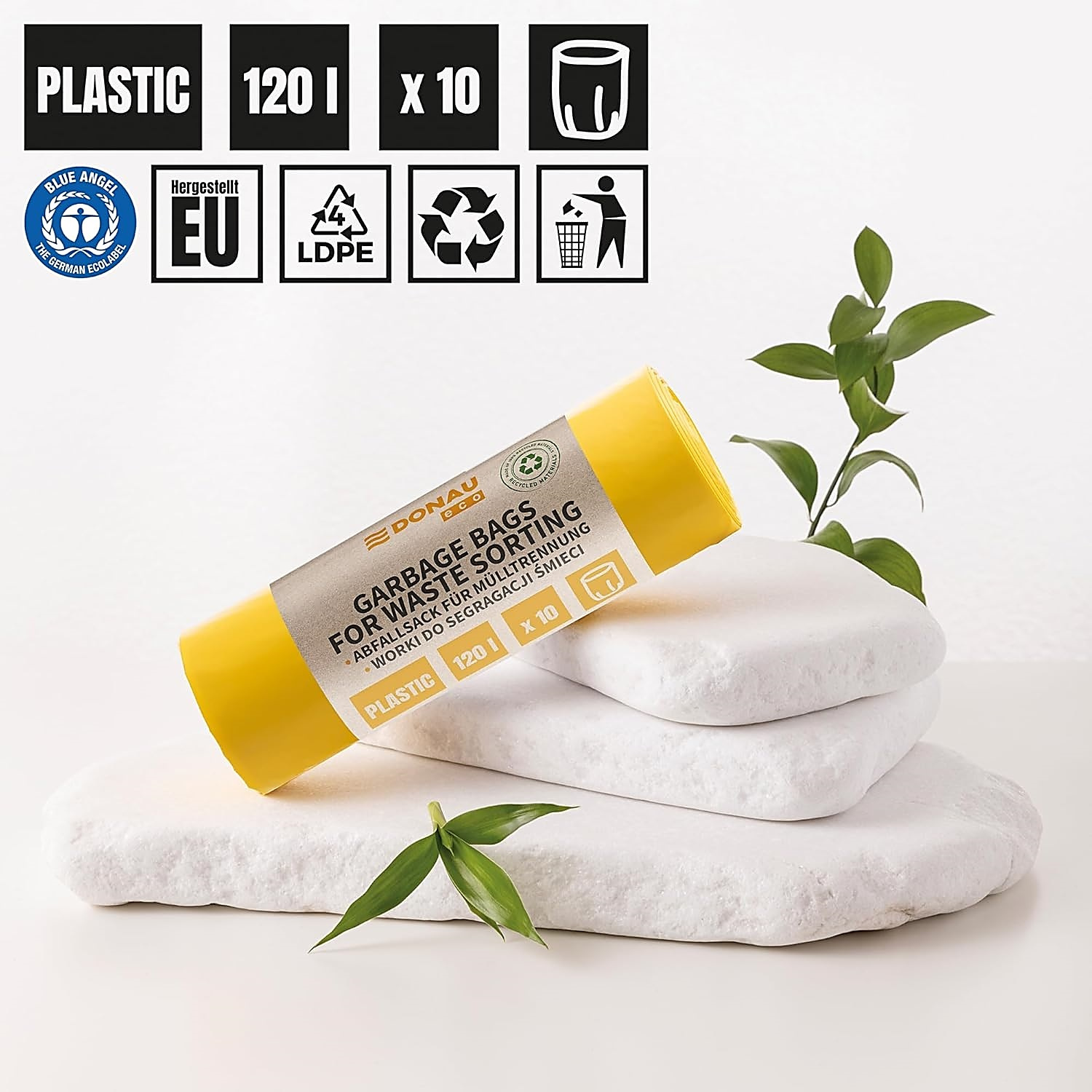 Worki na śmieci DONAU ECO, do segregacji plastiku, 120l, 10 szt., żółte